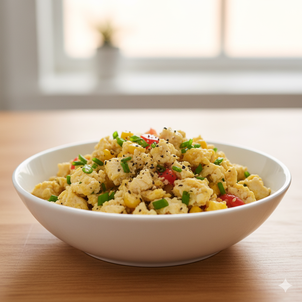 - [1분] 만약 달걀을 추가한다면, 반숙란(또는 삶은 달걀)을 잘게 썰어 넣고 한 번 더 가볍게 볶아줍니다. 마지막으로 불을 끄고 참기름을 살짝 두르면 단백질 두부 스크램블 완성!